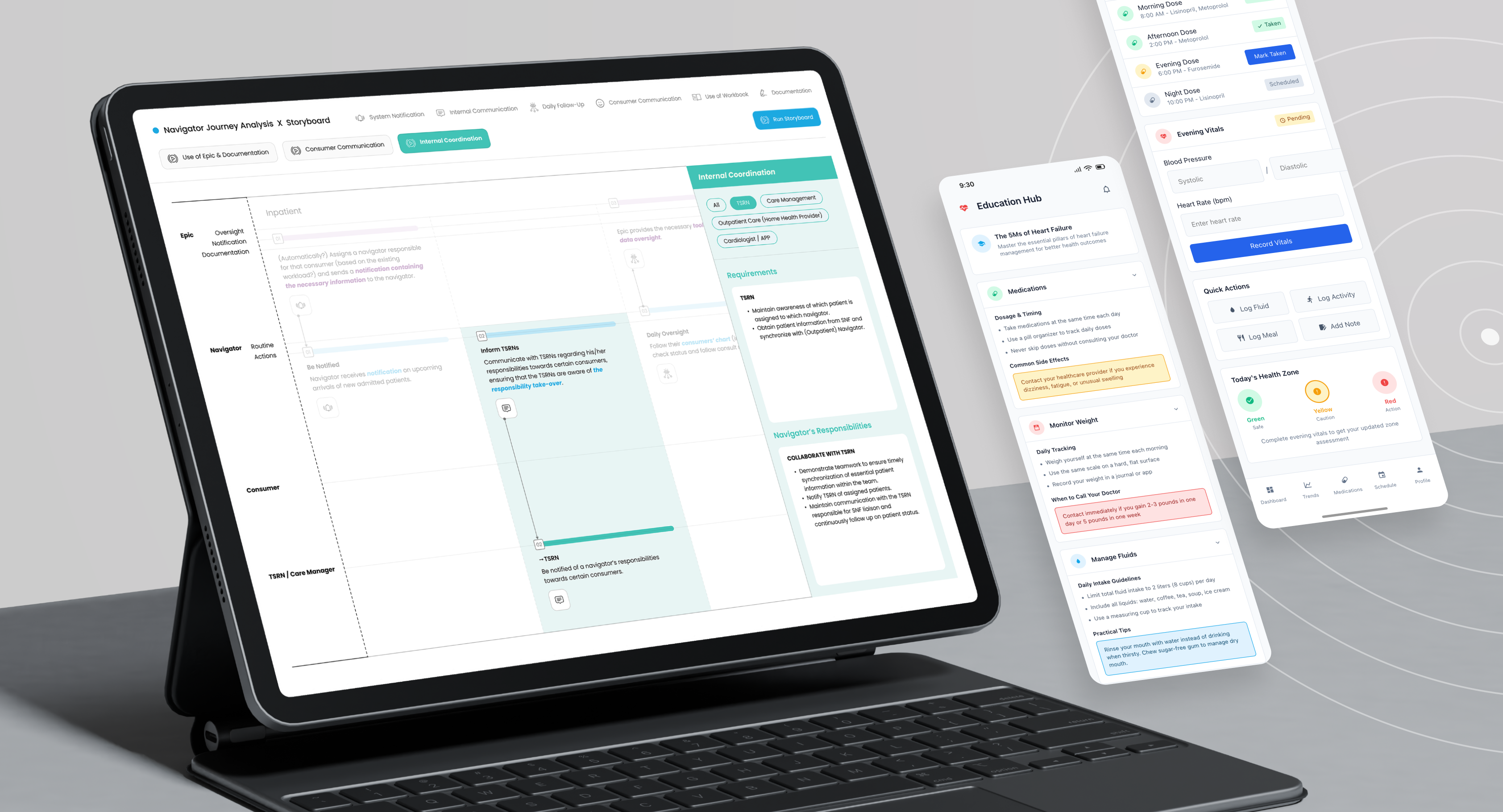 I owned the design and delivery of the Heart Care Workbook ā a tool for patient disease management ā and the Navigator Guide, a Figma-based instructional tool for staff.